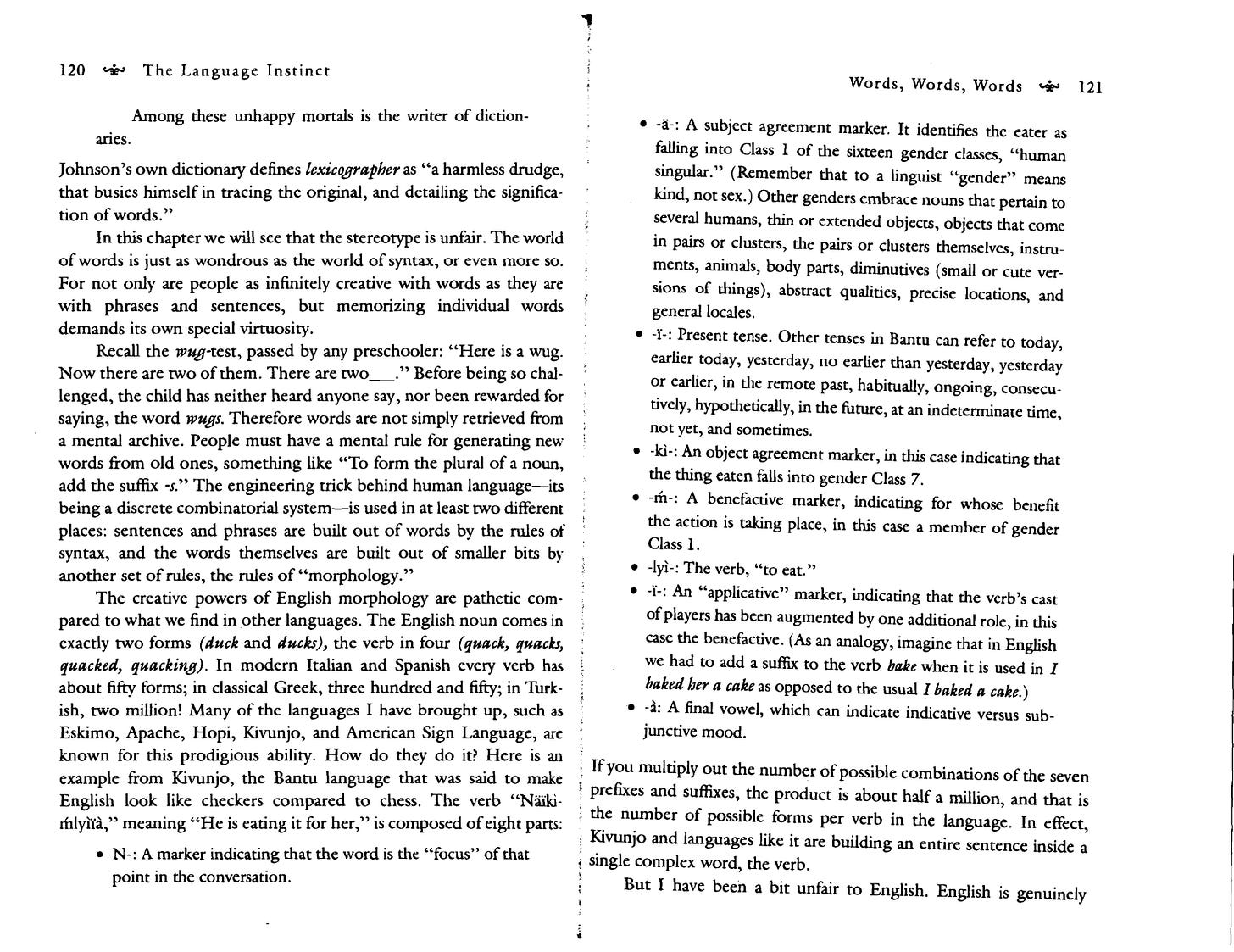 I nabbed the Naikimlyiia breakdown from Steven Pinker's “The Language Instinct” Buy here
